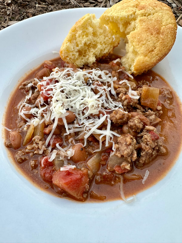 I haven’t made a beef-based chili in a while when I found a recipe by Ali Slagle on The New York Times/NYT Cooking website. Besides beef, Ms. Slagle’s recipe incorporates a bit of cocoa powder, chipotle pepper along with a neutral oil, salt, pepper, a yellow onion, fresh garlic, ground cumin, chili powder, tomato sauce, beans (pinto, black or the bean of your choice, liquid included) and apple cider vinegar.
