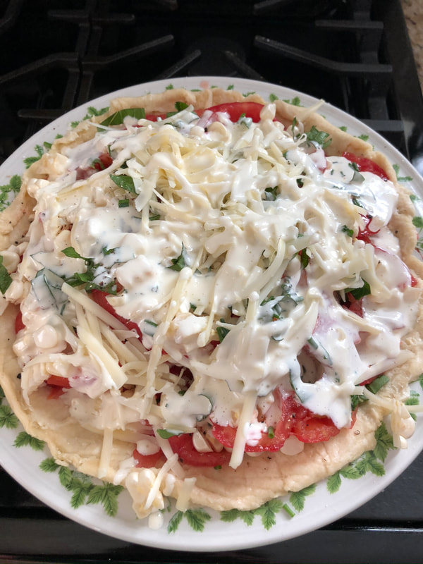 My daughter recently found on Deb Perelman’s food blog, @smittenkitchen, a recipe for tomato and corn pie. The pie has a rich double butter crust. The filling consists of a combination of sliced tomatoes, corn kernels, chopped basil and chives, shredded cheddar cheese and topped off with mixture of lemon juice and mayonnaise. After baking for approximately 30 minutes the pie can be served warm or at room temperature.