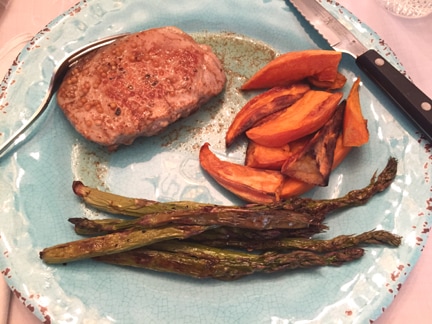 I can't recommend enough the Wegmans pork chops from local farms as also making a difference in a recipe. Fresh pressed, real apple cider from Delicious Orchards is the second component to why this recipe which makes it a winner. The pork was tender and  juicy and prepared in under 30 minutes.