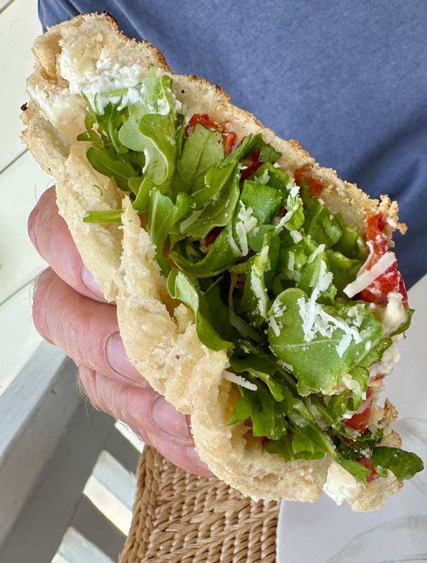My recent pizza making adventure was a recipe for Sicilian Stuffed Pizza with Ricotta and Arugula. The recipe is by David Tanis, a contributor to The New York Times. Mr. Tanis participated in a seminar in Valelunga-Pratameno on pizza on the island of Sicily. The pizzaiolo, or pizza maker, took pizza dough and baked it on the floor of a stone oven. Once the dough puffed up, it was pulled from the oven and the pizzaiolo, split the dough (it resembles a pita) covered the bottom with sheep’s milk ricotta and a handful of arugula. The top was returned, cut into wedges and eaten like a sandwich. The pizzaiola called it a focaccia.