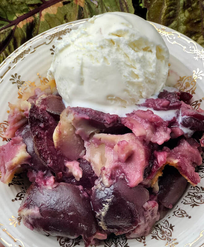 For my husband and I, I added a scoop of Tillamook Vanilla ice cream to the still warm clafouti. What a light and scrumptious ending to a meal. The clafouti had a subtle hint of sweetness and a hint of almond. I shared this with our neighbors, here’s what she said, “Donna thank you so much we just finished the cherry dessert… amazing… so delicious ❤️”