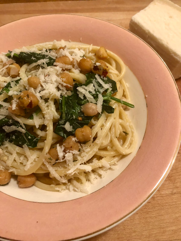What do you do when you accidently pick up a can of chick peas instead of cannellini beans? You hope to come across a recipe that uses them, which I did when I found a terrific pasta recipe on my NYT Cooking app. Creamy Chickpea Pasta with Spinach and Rosemary is a 30-minute recipe that not only used chickpeas, but I could also use rosemary from my cold frame and it was a PASTA dish to boot!