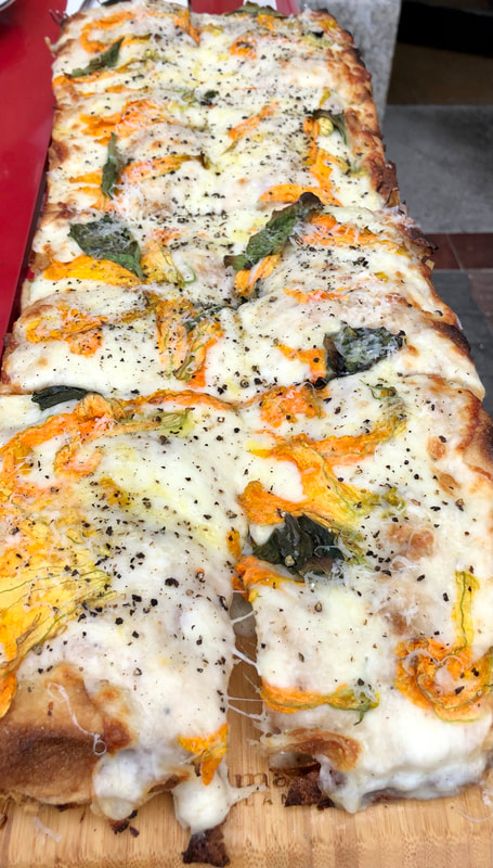 ​Several weeks ago, my husband and I went to Qua Pizza in Manasquan, NJ. Qua prepares Roman style pizza. Qua makes rectangle pies from a dough that has a long fermentation and is a high hydration dough. They bake their pies in blue steel pans which results in a crisp crust with a light, soft and airy interior. Between the crust and the tomato sauce, it’s a killer pie! The night my husband and I were there, their special pie that night was Cacio e Pepe with Zucchini Flowers. I’ve had their Cacio e Pepe before, which by the way, inspired me to find a recipe to make it a home. This pie was fabulous! The combination of ingredients and the zucchini blossoms made for a scrumptious supper!