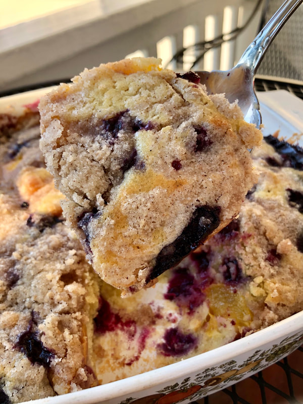 One of my favorite summertime desserts is blueberry and nectarine buckle from Gourmet Magazine, July 1991. As peak season for these two summer fruits is nearing the end, you must give this recipe a try. You can substitute peaches for the nectarines. However, I would recommend removing the peach skin before adding to the batter.
