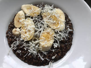 So after church this morning, I began to prepare this for our breakfast. I already had the Dutch process cocoa and only needed to purchase McCann’s Steel Cut Oats and unsweetened shredded coconut. Although preparation and cooking took about 45 minutes, I found the oatmeal delicious. For the first serving I topped the oatmeal with sliced banana, shredded coconut and a drizzle of honey for a bit of sweetness. It was very good. I had a bit more, but on the second one I used maple syrup. Even better!