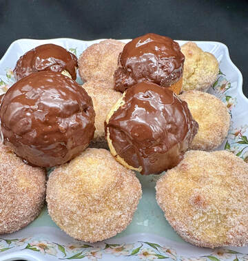 On evenings, when there's nothing to watch on TV, my husband and I will cruise the public broadcasting stations for cooking shows. America's Test Kitchen, Cook's Country and any show with Lidia Bastianich are our favorite. One evening on Cook's Country, one of the chefs was preparing muffin tin donuts. They looked easy and delicious. You didn't fry the donuts, but baked them in the oven. Other than buttermilk, the ingredients are pantry staples.