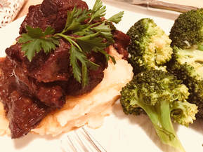 When it was time, I used my LeCruesut braiser to caramelize my onions and cook the beef. I baked the beef for two and a half hours. (This recipe can be made in a pressure cooker or slower cooker.) The meat came out moist, tender and succulent. I served it on a bed of mashed potatoes and a side of broccoli dressed with butter and pecorino cheese. Delicious! What leftovers there were went to my granddaughter, who now has two teeth and has started eating real food and a dish for our parish’s “Share a Meal Sunday.”