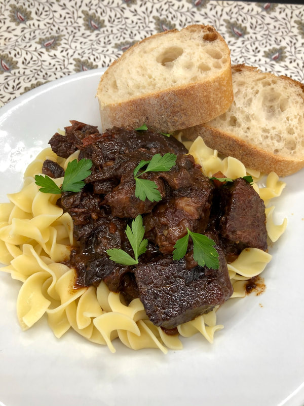 Recently I purchased some beef stew meat that was on special at Whole Foods. This past Sunday was a chilly, damp day that called for a nice hearty meal. I came upon a recipe at the NYT Cooking app by Mark Bittman for Beef Stew with Prunes. Now before you turn your nose up, this dish was outstanding. The prunes literally cooked down right into the sauce. The combination of ingredients gave the sauce a wonderful, rich flavor.