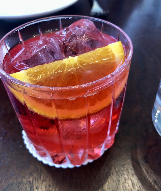 Upon our arrival we were seated in an open dining room with a view of The Manhattan West Plaza. Spacing between the tables was ample, the chairs comfortable and the table had a nice proportion for two people. We began with a cool non-alcoholic drink for each of us. I selected the Phony Negroni made with juniper, bitters and bubbles ($14) and my daughter had Tonio made with Italian bitter, grapefruit, elderflower and tonic ($14). Both were delicious and refreshing