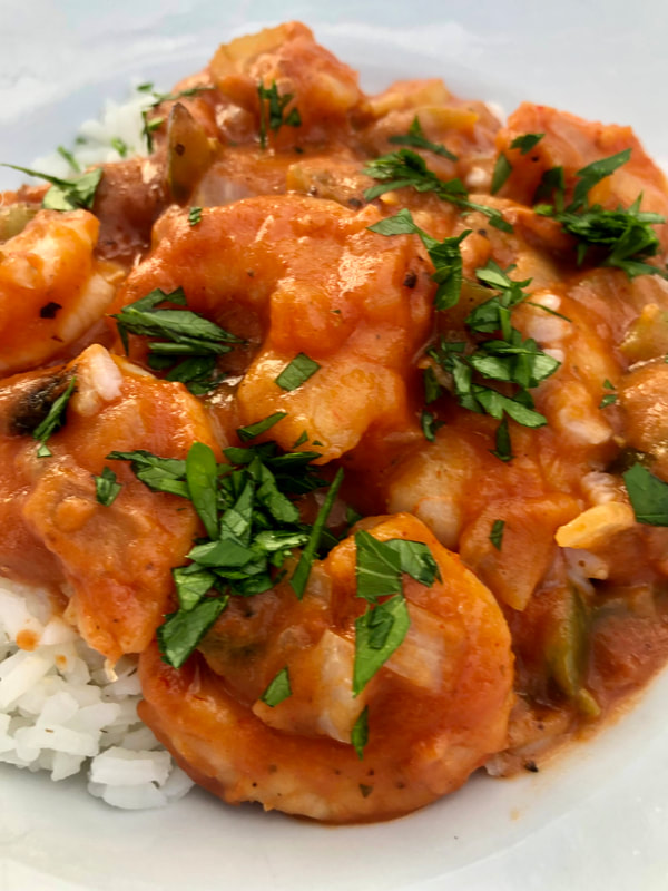 The following day I prepared Shrimp Creole. Again, a check what was on hand revealed that I only needed a few items items: shrimp, green bell pepper and a 15-ounce can of tomato sauce. For the recipe you’ll also need, Creole seasoning (the recipe includes the ingredients for making your own seasoning), unsalted butter, all-purpose flour, yellow onion, celery ribs, fresh garlic, hot sauce (optional), granulated sugar, dried thyme, oregano, dried basil, dried bay leaves, fine sea salt, black pepper, scallions, flat leaf parsley and steamed rice.