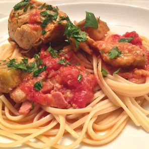 While this dish did take some time to prepare, about an hour, it think its worthwhile. You have your protein and veggie all in one meal. It's a recipe that can be made ahead and reheats wonderfully. I served mine with a side of linguine, using the sauce from the dish. If you're looking for a new recipe and one pot, this is one you should try!