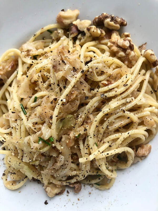 Caramelized Cabbage and Walnut Pasta