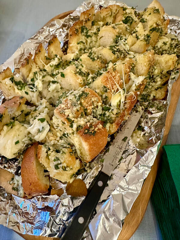 For our Christmas dinner celebration at our daughter’s house, our son made Cheesy Garlic Pull Apart bread. For the recipe he created he used a wide loaf of Italian bread, an 8-ounce package of Kerrygold butter melted, fresh parsley, minced garlic and shredded mozzarella.